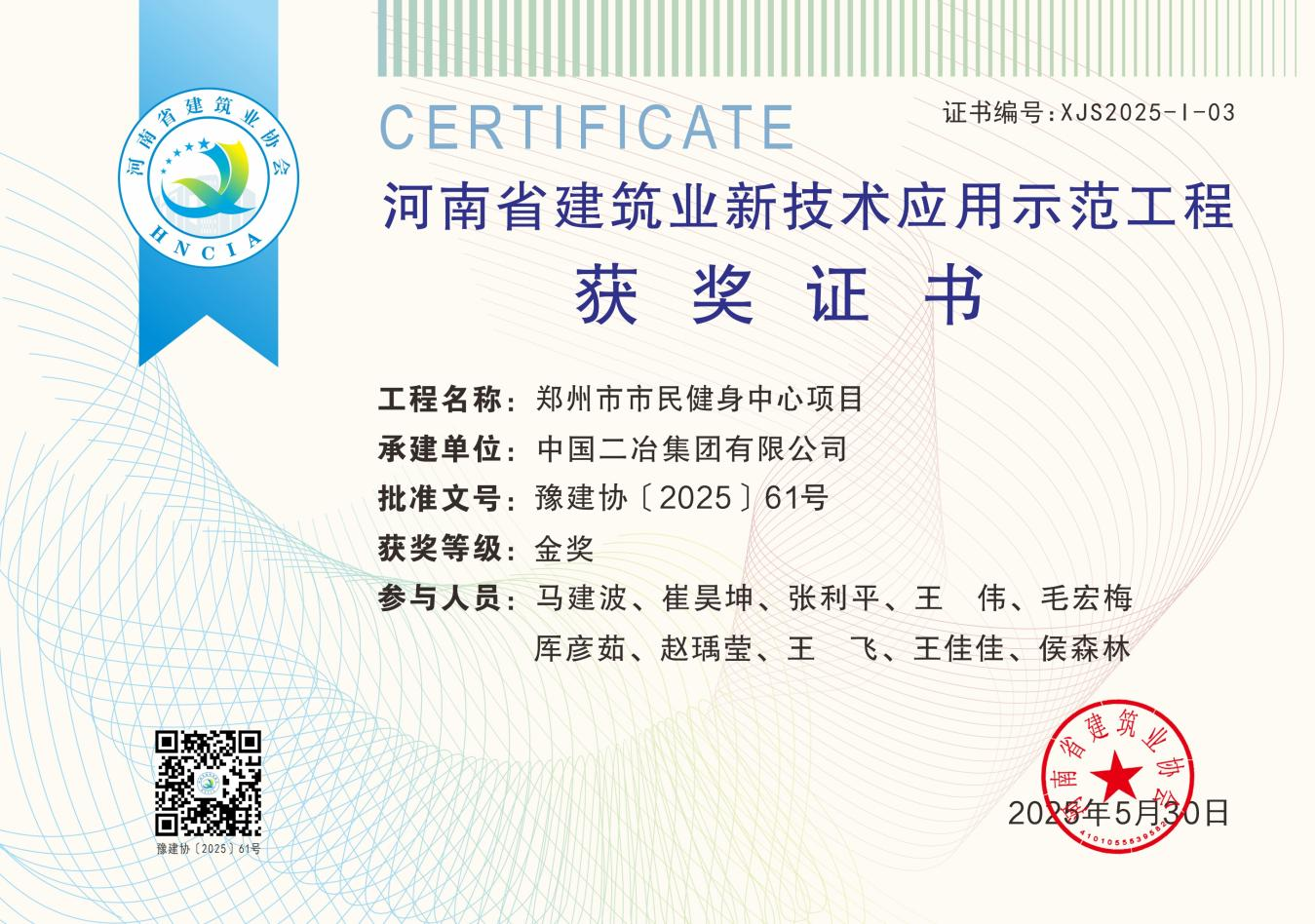 6月4日,中國二冶承建的鄭州市市民健身中心項目榮獲2025年“河南省建筑業(yè)新技術(shù)應(yīng)用示范工程”榮譽稱號。