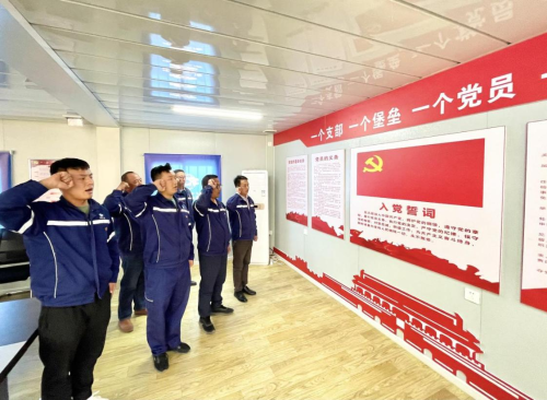 在學黨史、悟思想環(huán)節(jié),新型建筑分公司副總經(jīng)理帶領大家學習《弘揚西柏坡精神》,觀看西柏坡教育視頻,舉行授旗儀式,并在黨旗下重溫入黨誓詞。通過分享西柏坡的故事、贈送《西柏坡精神》等學習書籍,用革命先烈們堅韌不拔、無私奉獻的精神鼓舞大家堅守初心使命,展示了項目部在工程建設中積極發(fā)揮黨支部戰(zhàn)斗堡壘作用,引導廣大黨員干部做到學史明理、學史增信、學史崇德、學史力行,激勵黨員干部深耕細作、精細管理,在黨史學習教育中立足本職工作,把紅色教育的收獲轉(zhuǎn)化為扎實做好本職工作的動力。