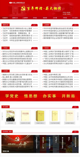 5月4日,公司黨群工作部特別策劃的“百年輝煌·薪火相傳”專題網(wǎng)頁正式上線,為深入學習宣傳貫徹習近平新時代中國特色社會主義思想,全面貫徹落實中國五礦、中冶集團黨史學習教育動員部署會相關(guān)要求,號召全體黨員干部學黨史、悟思想、辦實事、開新局,不斷增強抓好學習教育的思想自覺、政治自覺和行動自覺,高標準高質(zhì)量完成學習教育各項任務增開了新渠道。專題網(wǎng)站下設9個欄目,分別是“重要論述”“上級精神”“學黨史”“悟思想”“辦實事”“開新局”“黨史書架”“百年輝煌·影像”“百年輝煌·百花齊放”欄目。專題網(wǎng)站旨在打造思想引領、政策解讀、信息傳遞、成果展示、經(jīng)驗分享等為一體的黨史學習教育網(wǎng)上信息平臺,引導公司廣大黨員干部將思想和行動統(tǒng)一到中國二冶黨委部署上來,切實做到學史明理、學史增信、學史崇德、學史力行,一步一個腳印扎實推動公司各項事業(yè)向前發(fā)展,以優(yōu)異成績迎接建黨100周年!