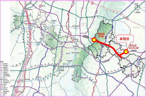 梓州大道南延線(省道424大林至仁壽段)工程位于眉山市天府新區(qū),全長17.284km(含連接線長度)。該工程按一級(jí)公路標(biāo)準(zhǔn)雙向6車道設(shè)計(jì)(兼顧城市道路功能),路基寬48米,設(shè)計(jì)速度80km/h,共有橋梁12座,天橋7座,涵洞及通道32道,穿龍泉山脈隧道1處(4000米),互通立交1處。主要建設(shè)項(xiàng)目包括道路工程、橋梁工程、交安工程及相關(guān)附屬配套設(shè)施。